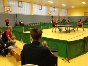 Die „jungen Wilden“ waren nun im unteren Paarkreuz an der Reihe: Die Sportschüler Timothy Franke und Leander Neudeck hatten jedoch harte Brocken als Gegner, gegen die kein Kraut gewachsen war – am Ende mussten sich beide 0:3 geschlagen geben.